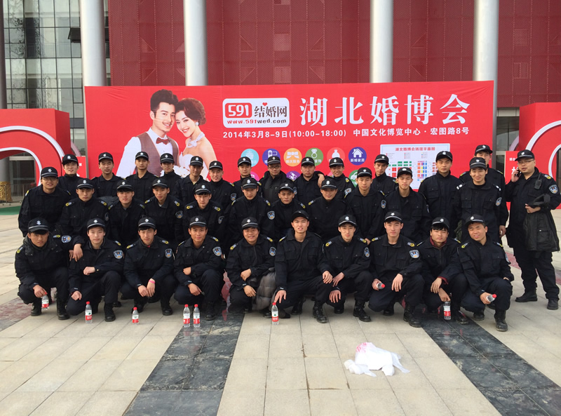 深寶華保安公司派出36名精英隊(duì)員為湖北婚博會(huì)安保活動(dòng)現(xiàn)場(chǎng)進(jìn)行場(chǎng)地護(hù)衛(wèi)、秩序維護(hù)、安全檢查。