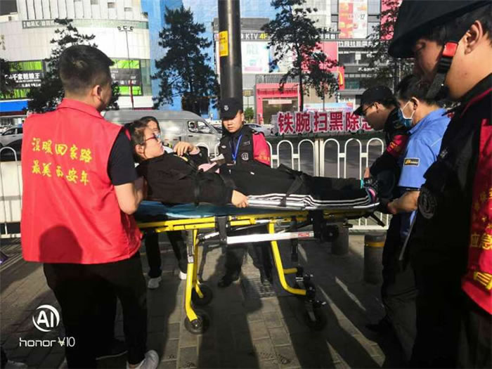 保安員協(xié)助120將乘客送上救護(hù)車