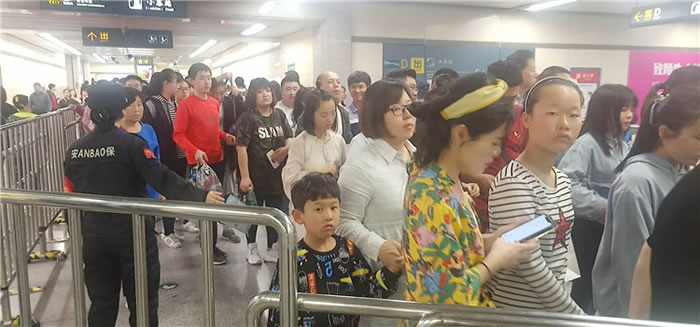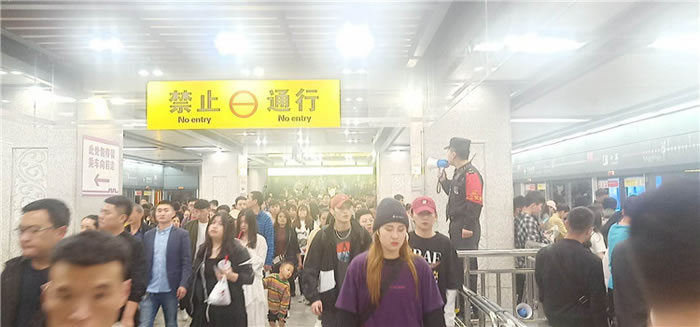 高峰期大客流安檢員疏導(dǎo)乘客
