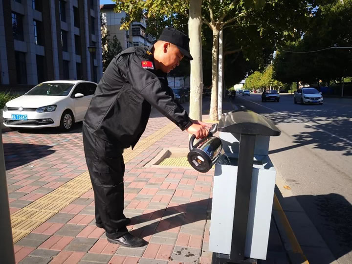 為了防止火勢蔓延,保安員及時通知執(zhí)勤的同事攜帶滅火器,在等待過程中,將垃圾桶附近的易燃品進行了轉移。同事趕到后,及時果斷對火源進行了撲滅。